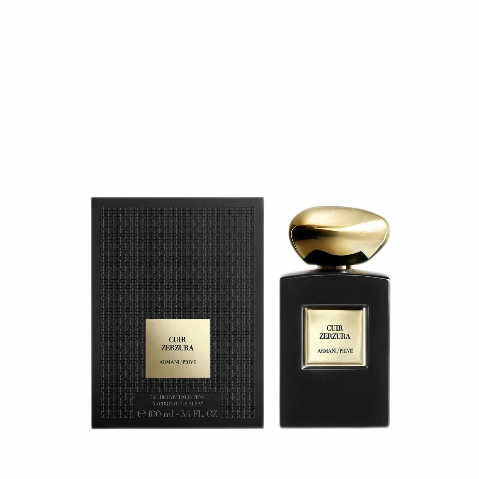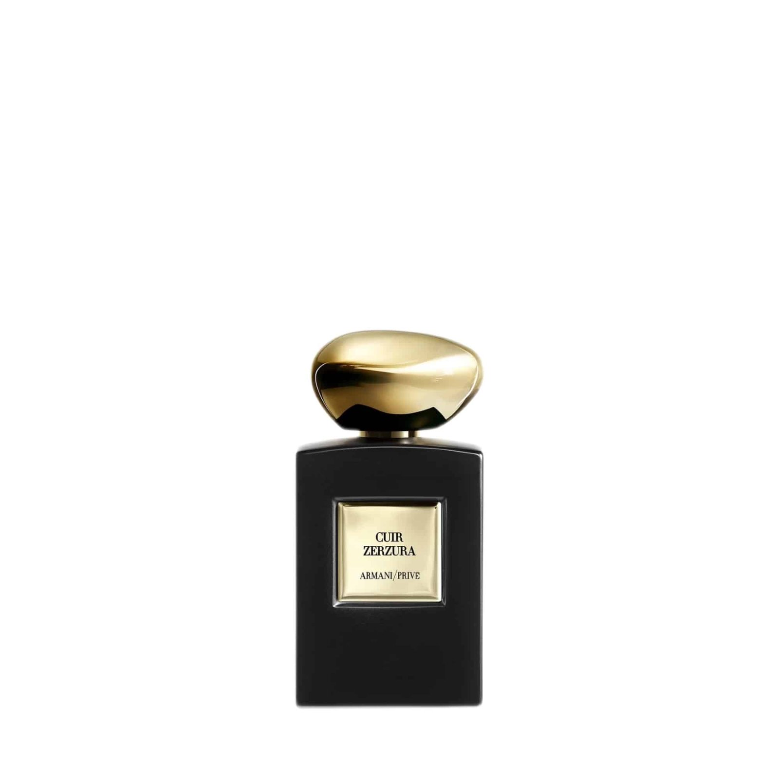 Cuir Zerzura è racchiuso nell’iconico flacone Armani Privé dal colore onice opaco e misterioso, completato da un tappo dorato.
