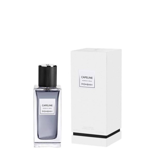 CAPELINE. Un abbinamento sofisticato tra l’eleganza couture del giglio portafortuna di Yves Saint Laurent e la sensuale nonchalance della vaniglia. Fiori bianchi, baccelli neri. Inebriante e voluttuoso.